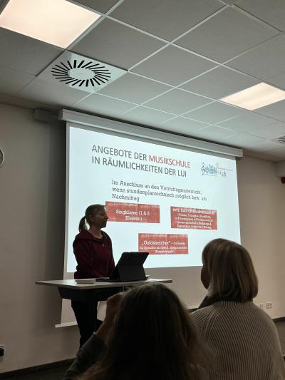 Abschließend stellte Almut Schöller, Leiter der Adolf-Henselt-Musikschule, das zusätzliche musikalische Angebot in den Räumlichkeiten der Schule vor.