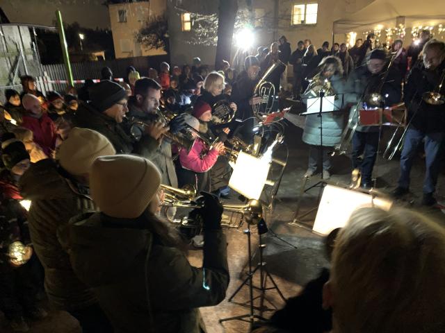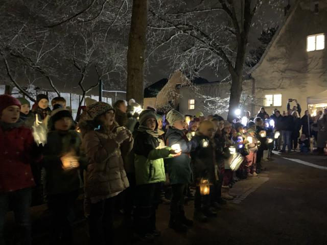 Musikalisch ging es anschließend weiter: Toni Schake vertonte „Jingle Bells“, während Julia Wilke einen deutschen Text beisteuerte. Unter der Leitung von Julia Wilke (2u) sowie den Lehrerinnen Elke Ochsenkühn (1u), Lisa Schoor (3u) und Petra Deuerlein (4u) sangen und bewegten sich alle vier Klassen gemeinsam im Lichterglanz – ein stimmungsvoller Höhepunkt des Abends.