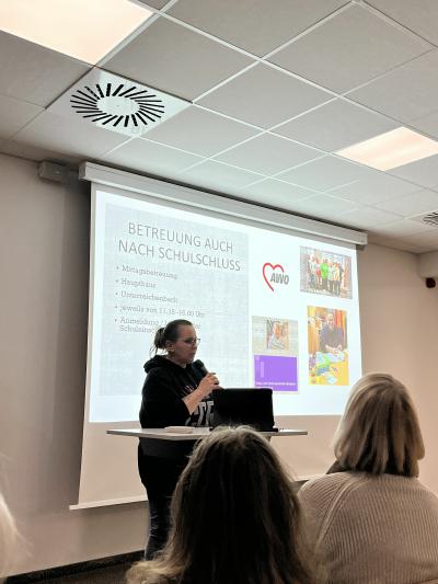 Anschließend hatten die Eltern die Gelegenheit, sich bei Frau Distler und Frau Nögel über das Angebot der Mittagsbetreuung im Haupthaus und in Unterreichenbach zu informieren.
