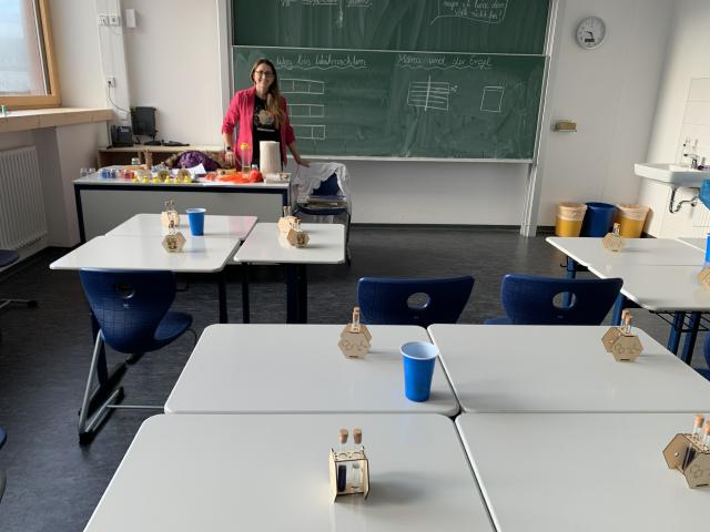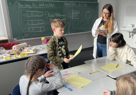 Unter der Leitung von Dr. Diana Pöllmann, promovierte Chemikerin, arbeiteten die dritten Klassen an abwechslungsreichen Experimenten. Dabei lernten die Schülerinnen und Schüler, Fragen zu stellen, Vermutungen zu äußern und gemeinsam Lösungen zu finden – ganz im Sinne echter naturwissenschaftlicher Arbeit.