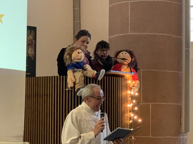 Ein lebendiges Gespräch der beiden Handpuppen Coco und Fred lenkte die Aufmerksamkeit der Kinder auf das Thema Licht.